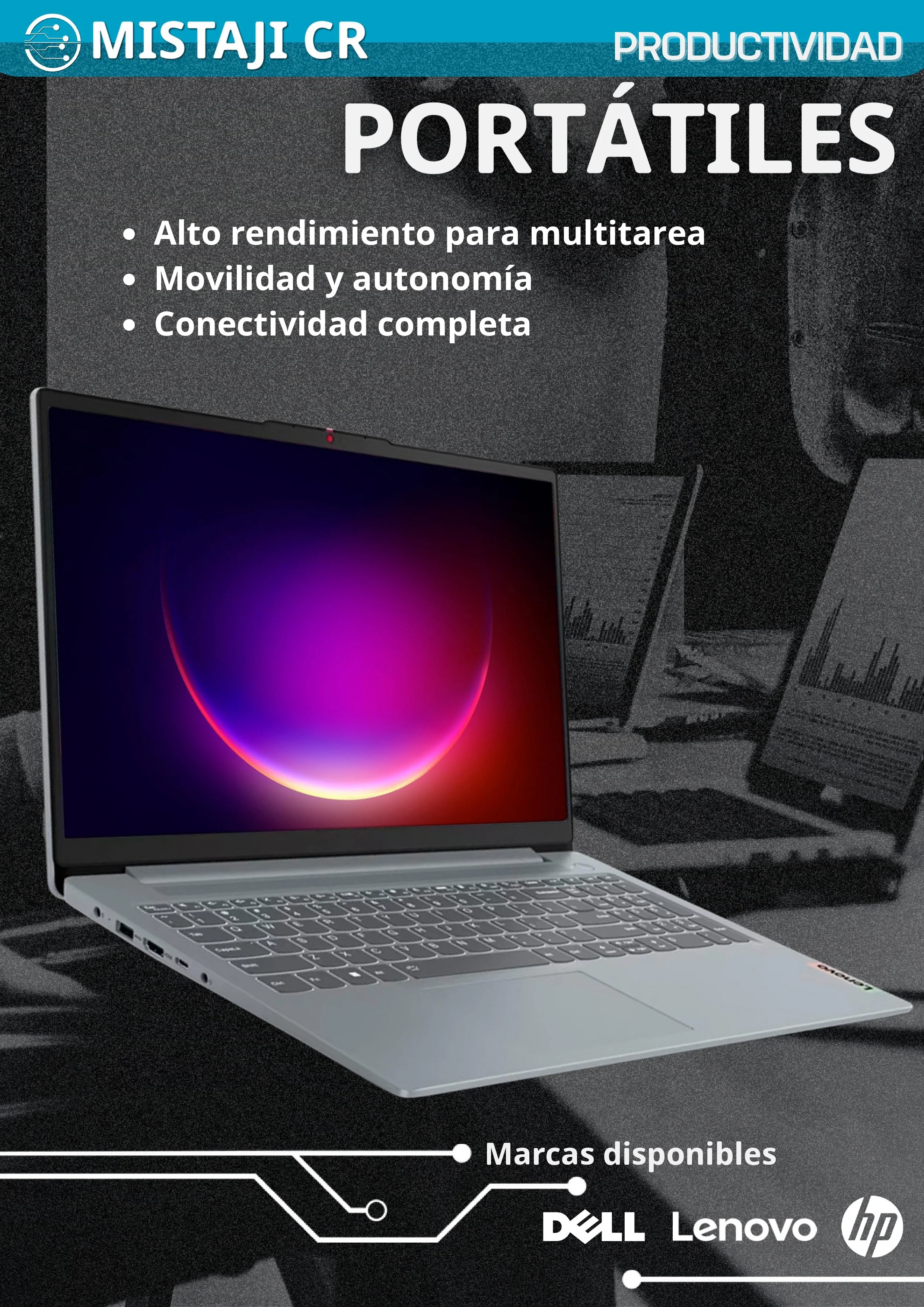 Las laptops Mistaji CR ofrecen rendimiento, portabilidad y confiabilidad. Contamos con modelos diseñados tanto para empresas como para estudiantes y usuarios personales que requieren equipos potentes y seguros.